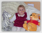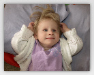 She had trouble gaining weight and at 4.5 months doctors found she had bilateral cataracts, these were then removed in December 06',weighing only around 8 lb. In spring 07' Meg had a cold which made her refuse to eat and was losing weight so doctors intervened by giving her a nasal gastric tube in April 07', which has helped to a degree though has made her have bad reflux: she now weighs over 15 lb aged 19 months.